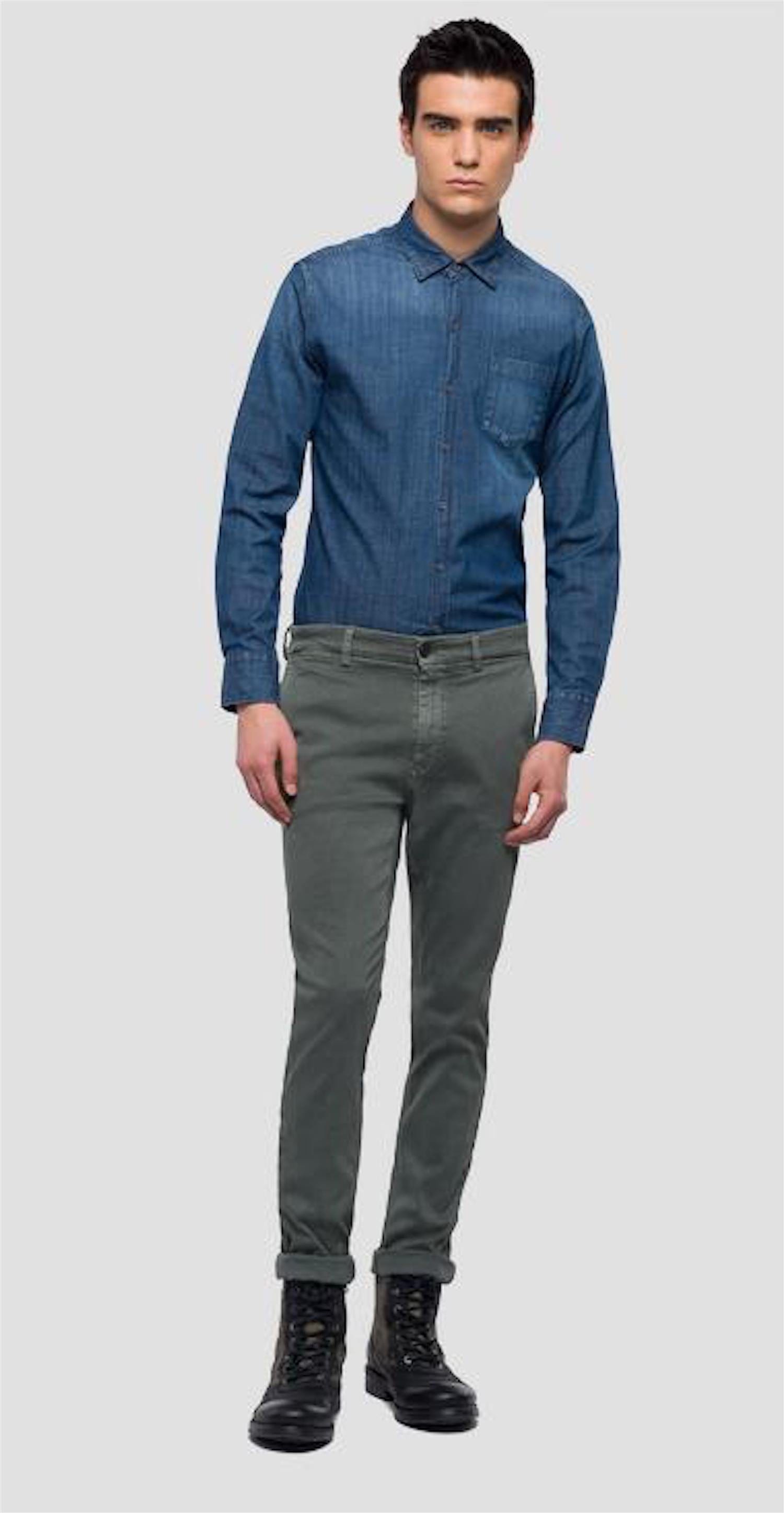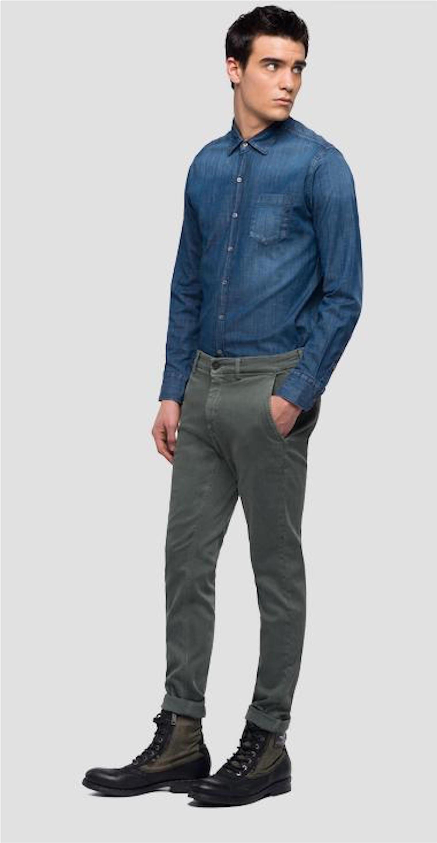 Zeumar Chinos fra Replay er slim, med nyskapende Hyperflexteknologi som gir en superstretch. Kombinert med tradisjonell denim design har Replay erobret markedet med størst komfort, og italiensk kvalitet.