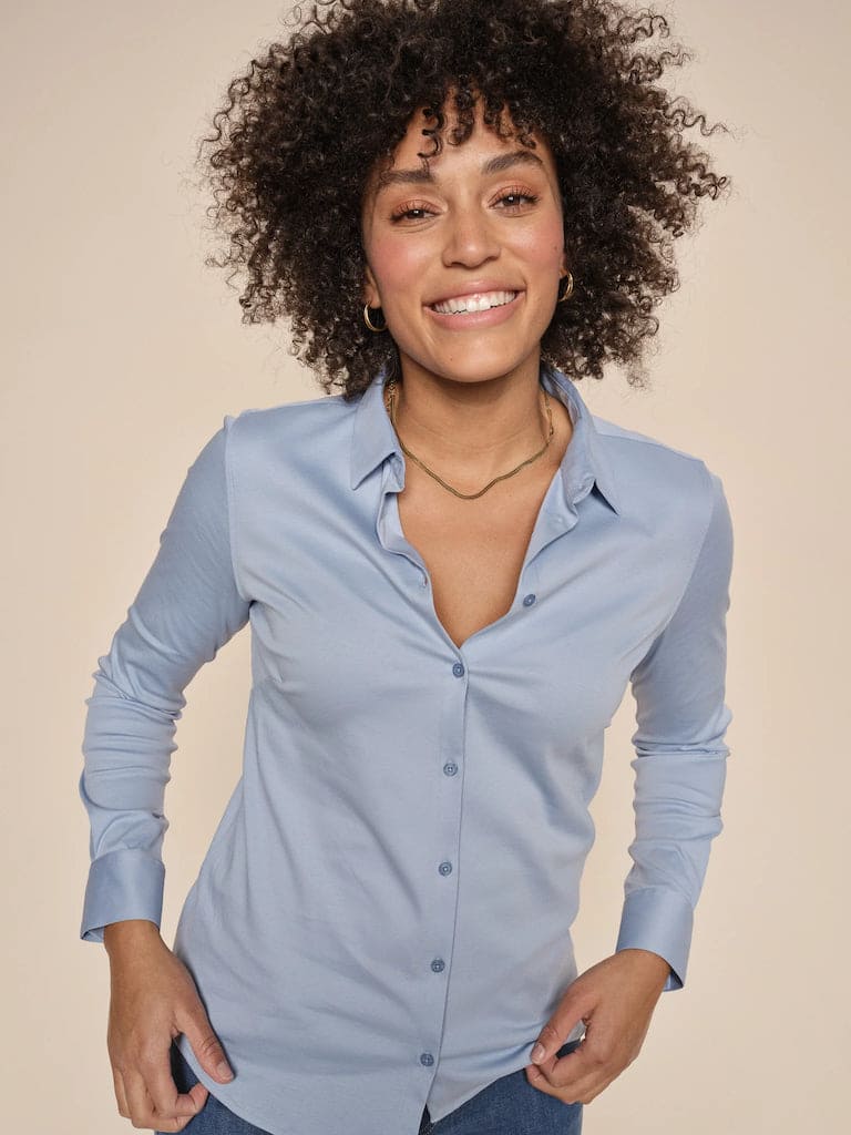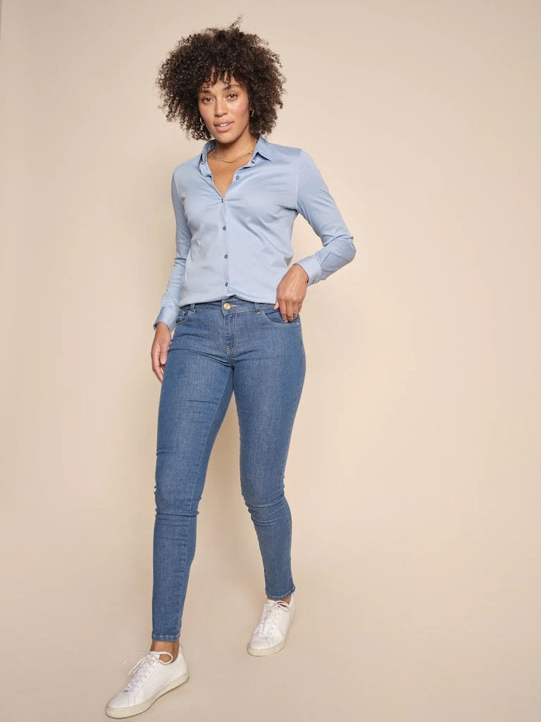 Klassisk skjorte i 100% fra Mos Mosh. Skjorten har en flatterende og smal passform, lukking med ton-i-ton knapper, klassisk krage og lange mansjetter.