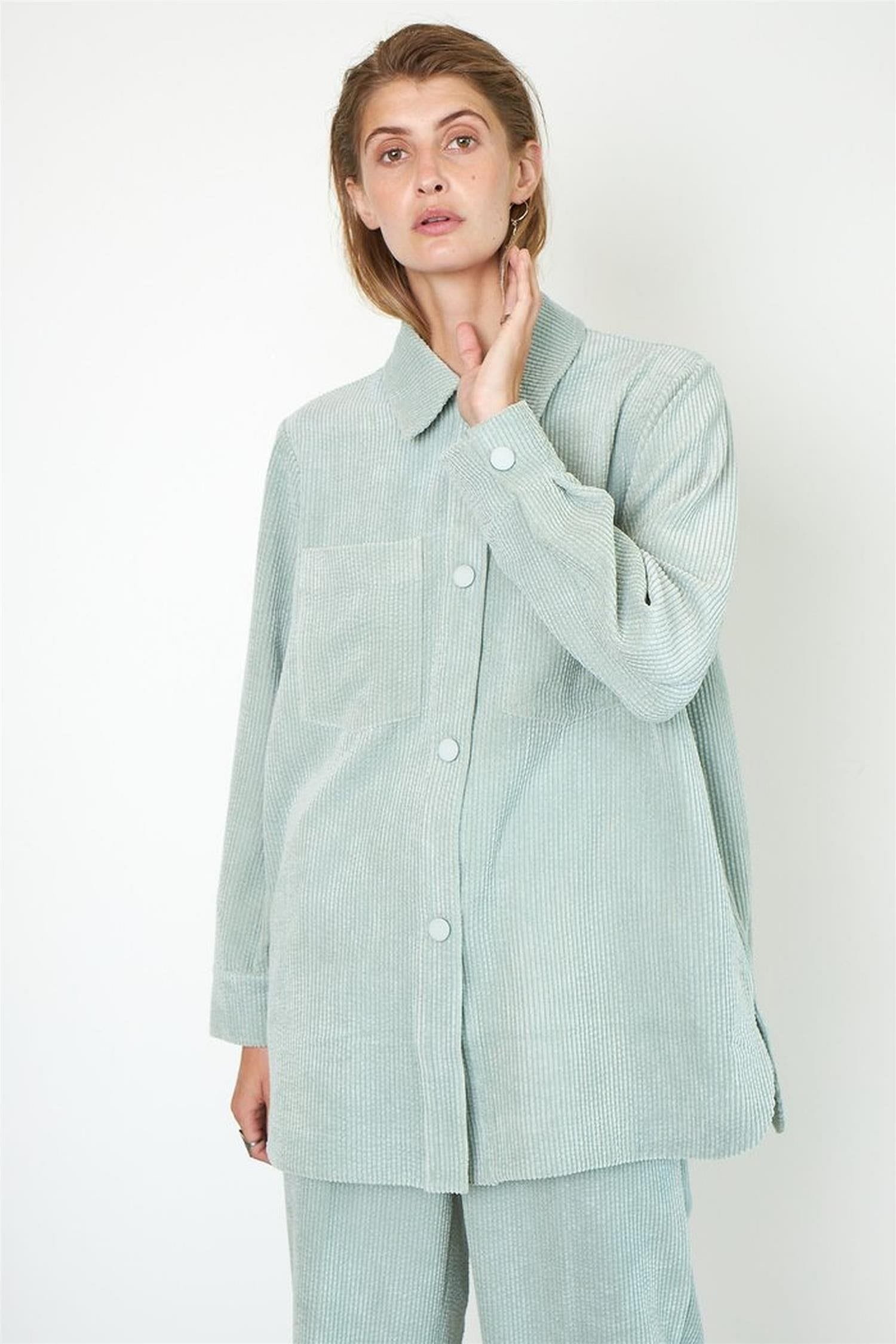 Tynn jakke i myk kordfløyel, jakken har lommer og knapper foran samt knapper nede på ermene.