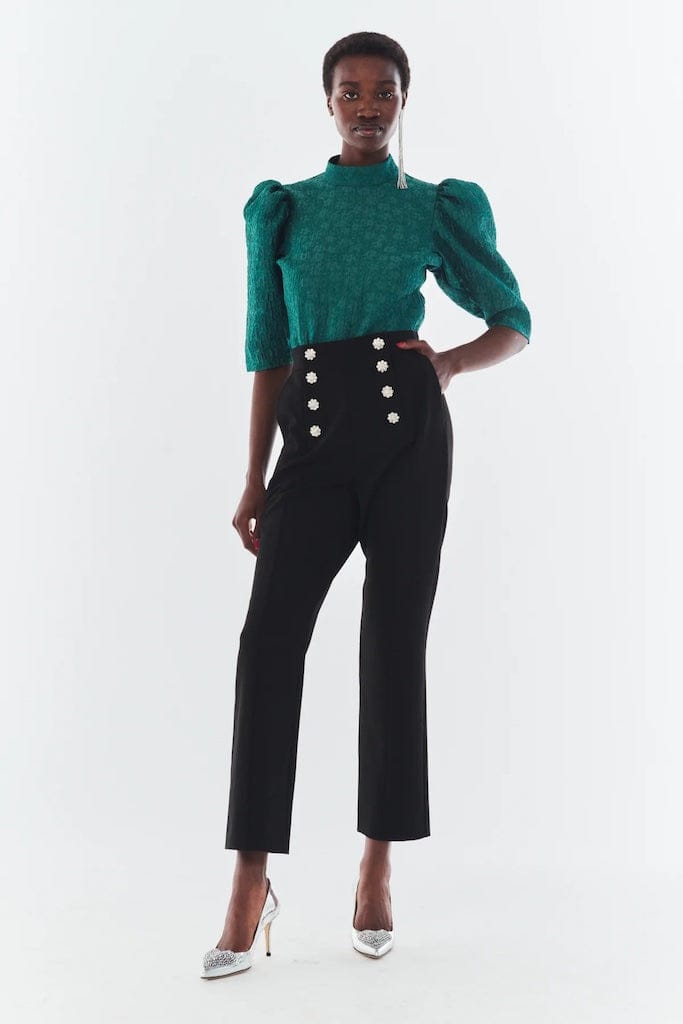 Highwaist bukse med luksuriøse krystall knapper.
